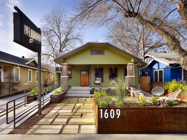 Boutique 7-room hotel in a renovated craftsman bungalow in East Austin. The interior is full of retro touches and work by local artists. All rooms feature longleaf pine floors, fluffy platform beds hand-made by the owner, and Wi-Fi radio.